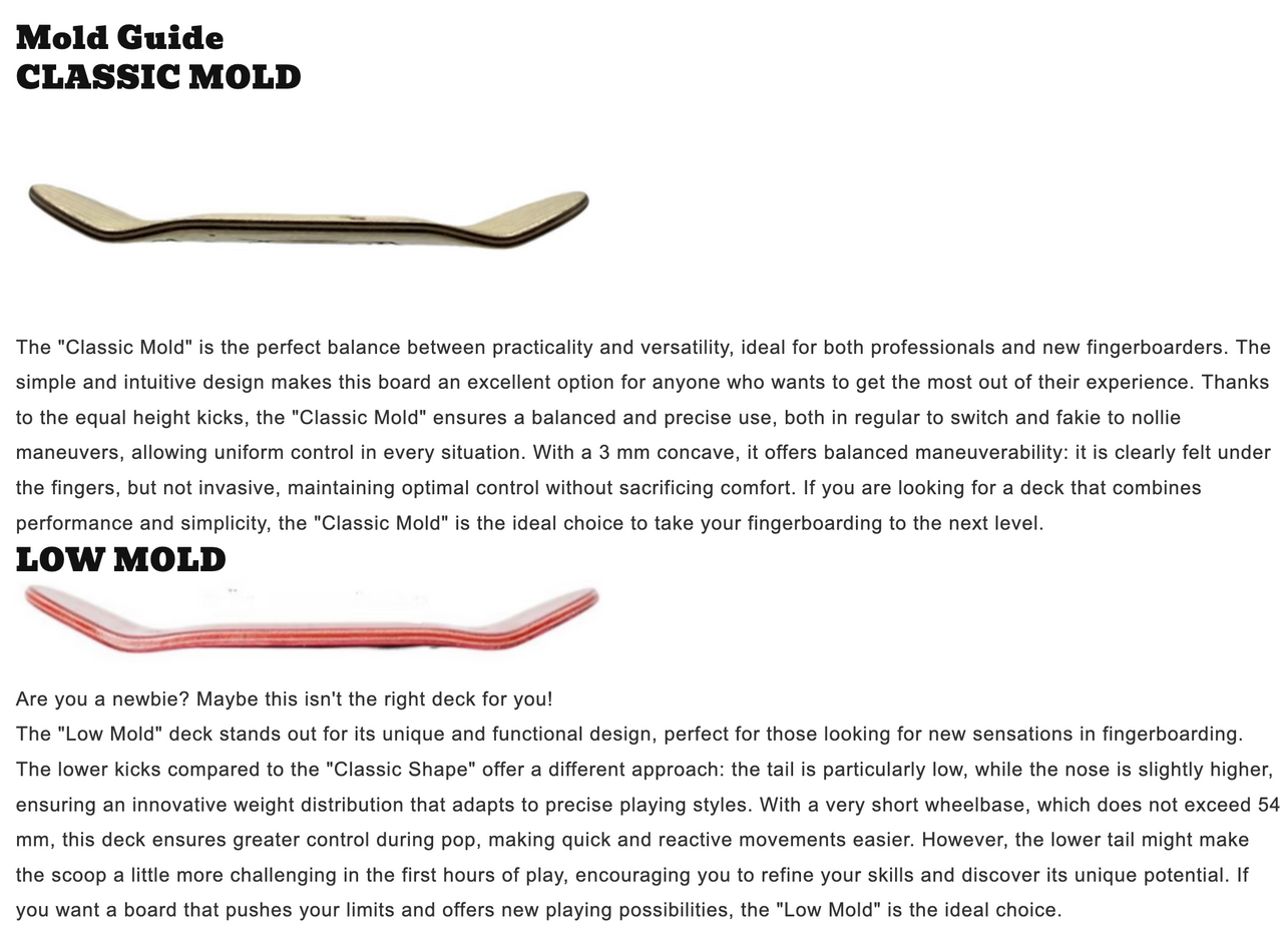 A truly great fingerboard deck can make your experience a whole lot more enjoyable! How do you know which deck to get? We make it easy for you. Over 22 years of fingerboarding experience, I've seen it all, from good to great to totally amazing decks! Here at FlatFace, we only carry the absolute best fingerboards, ones that really perform amazing and make it easier to do tricks so you can get better at fingerboarding easily and have a great time using them! Try out our FlatFace decks, designed with performance in mind above all else to make it easier to do crazy tricks and improve your skills. Check out the other brands we carry as well, from some of the best fingerboarders' companies around the world!