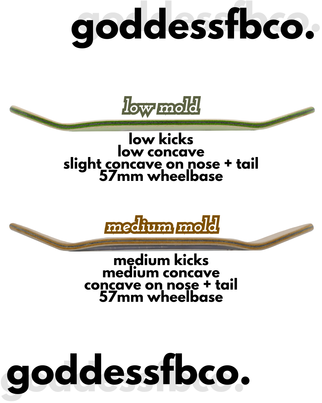 Both molds have a 57mm wheelbase, which is a comfortable distance for beginners and experts alike.