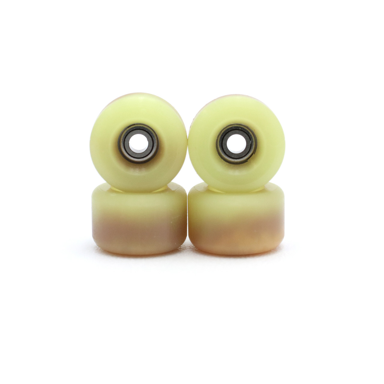 Blistered Wheels are hand made with proprietary processes developed by us using special materials, pigments, and high tech equipment to create the best poured urethane fingerboard wheels. Urethane is the same material real skateboard wheels are made of, giving a very realistic feel. Our blend is tailored for the best fingerboarding experience, to ensure that the wheels have just the right balance of grip and hardness to make them really special.