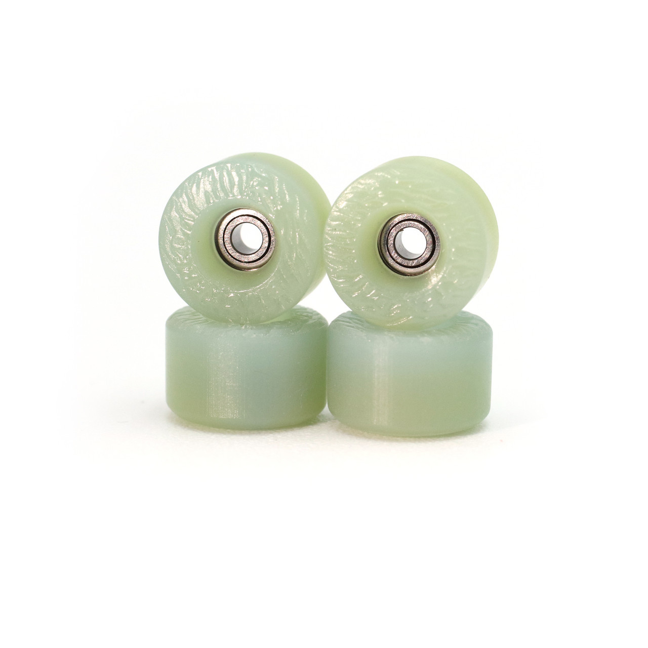 Blistered Wheels are hand made with proprietary processes developed by us using special materials, pigments, and high tech equipment to create the best urethane fingerboard wheels. Urethane is the same material real skateboard wheels are made of, giving a very realistic feel. Our blend is tailored for the best fingerboarding experience, to ensure that the wheels have just the right balance of grip and hardness to make them really special.