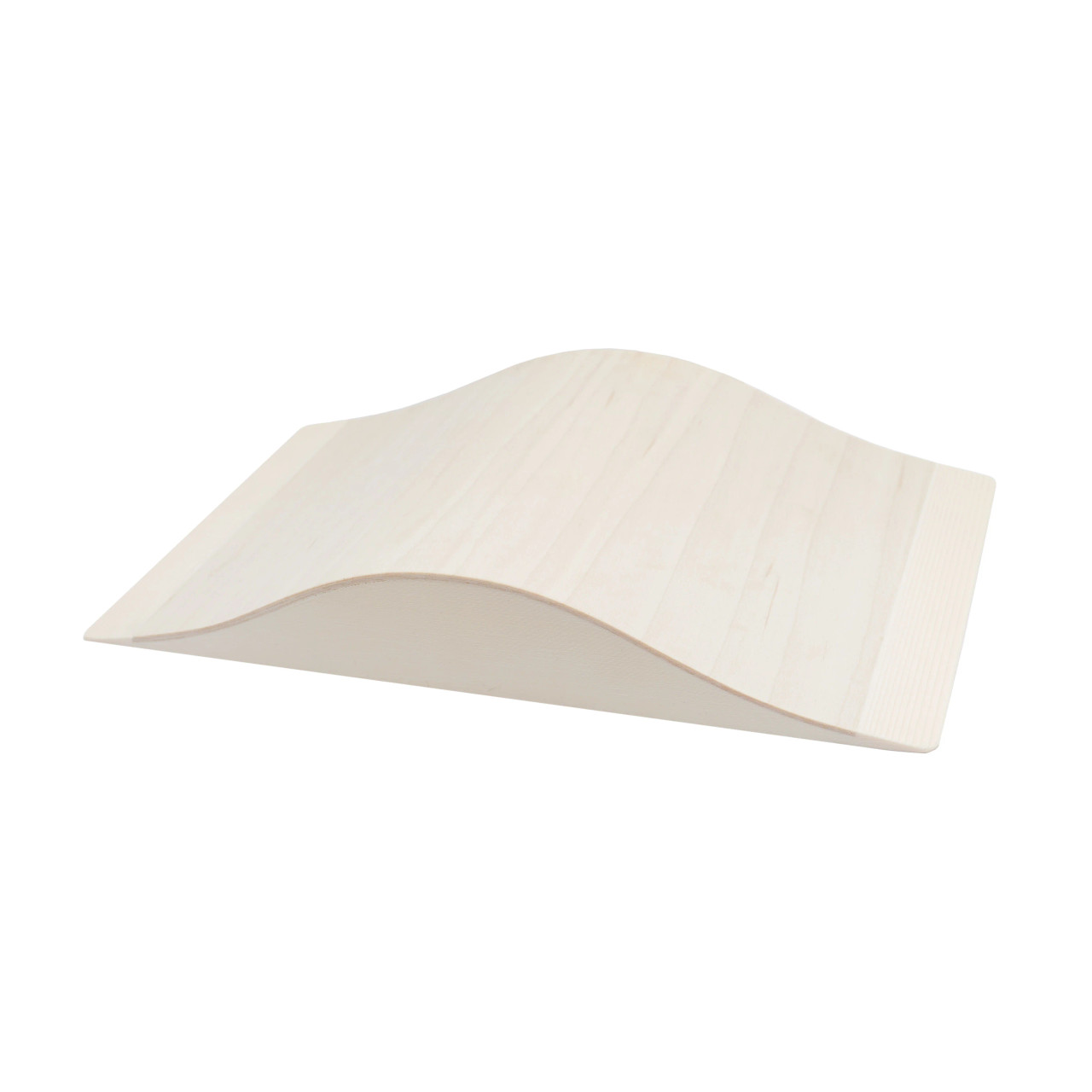 Featuring a plastic body construction with a solid wooden riding surface. There is a plastic lip to prevent chipping of the wood as well as an internal structure to help prevent echo when riding on the ramp.